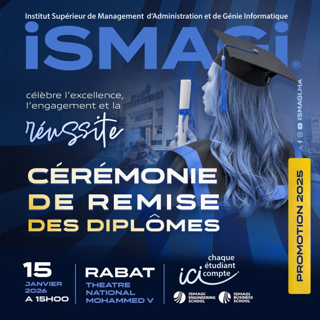 Il y a quelques années, ils franchissaient les portes de l’iSMAGI avec des rêves plein la tête et une soif d’apprendre. Aujourd’hui, après des nuits de travail, des défis relevés et des succès partagés, l’heure est venue de célébrer leur accomplissement. Nous avons l’immense honneur de vous inviter à la Cérémonie de remise des diplômes de la promotion 2025. Plus qu’une simple formalité académique, cet événement est un hommage au mérite, à la persévérance et à l’excellence. C’est un moment suspendu, placé sous le signe de l’émotion et de la fierté, où nous honorons non seulement la réussite de nos étudiants, mais aussi le soutien indéfectible de leurs familles et de nos enseignants. Rejoignez-nous pour partager cette joie et célébrer ensemble l’ascension d’une nouvelle génération de talents prêts à transformer le monde de la technologie.