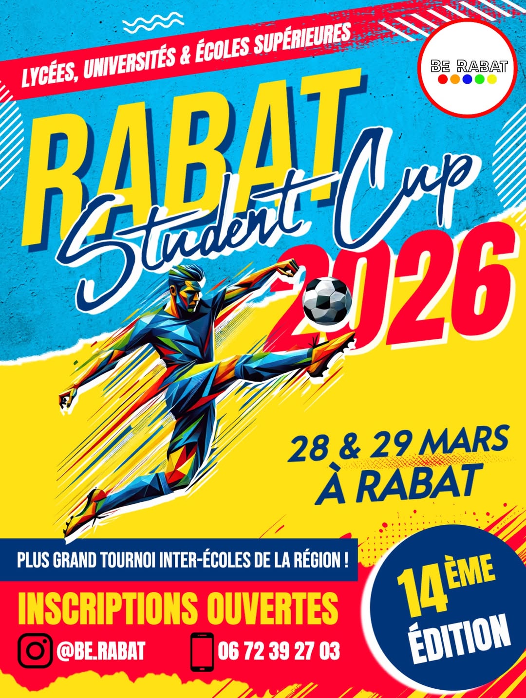 Cette année, nous sommes fiers d’annoncer la 14ᵉ édition de la Rabat Student Cup, le plus grand tournoi inter-écoles de la région de Rabat 🏆